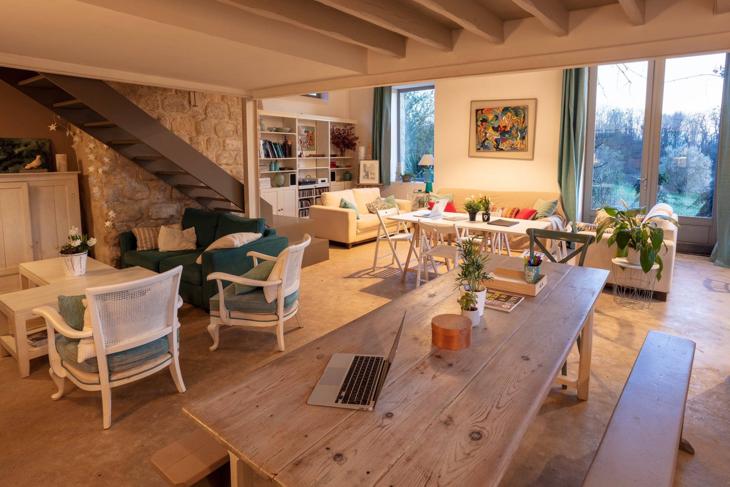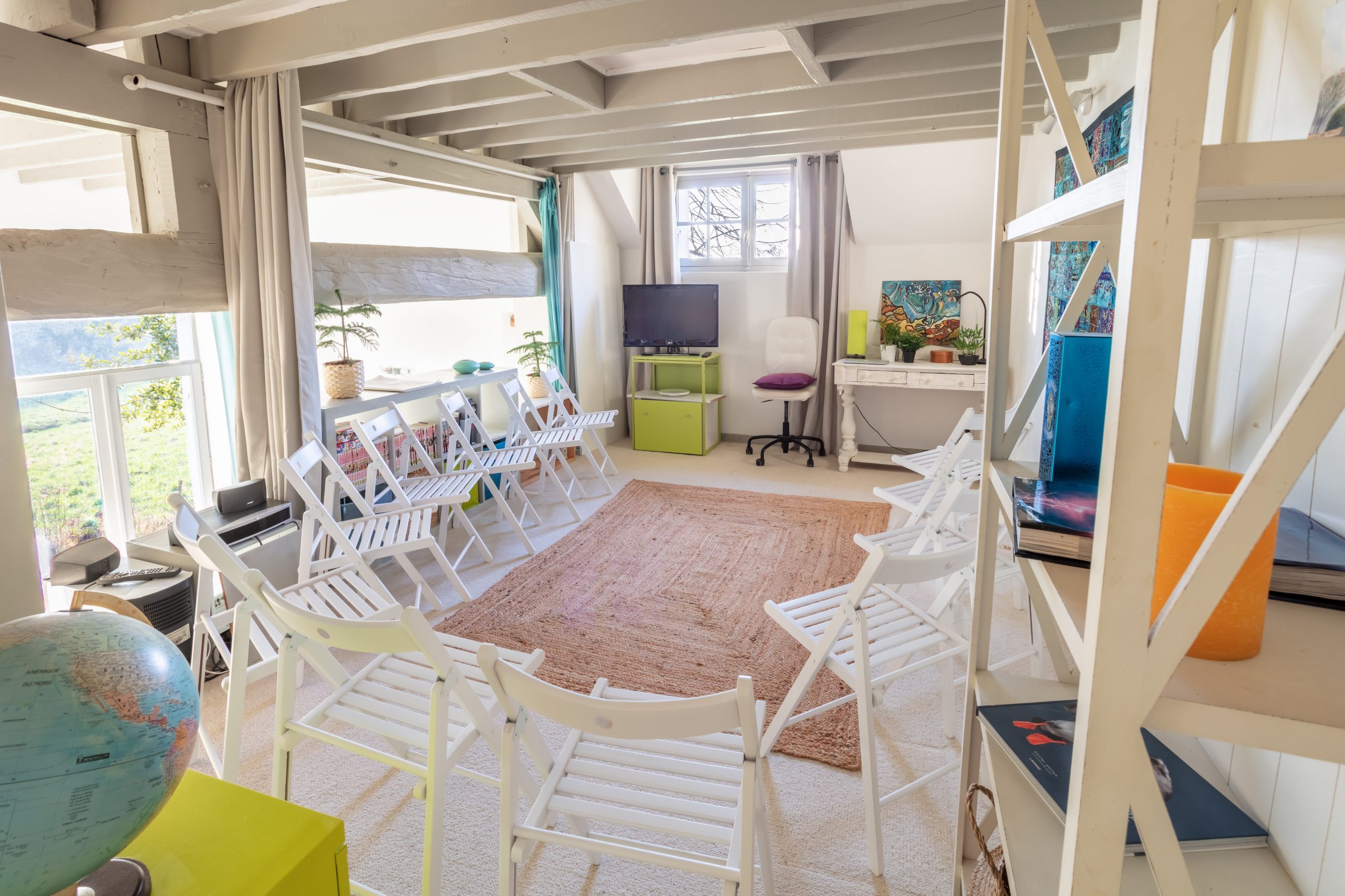 Baigné de lumière, prêt à accueillir une vingtaine de personnes autour de toutes sortes d’activités : réunion de travail, ateliers, projection, détente, relaxation, …