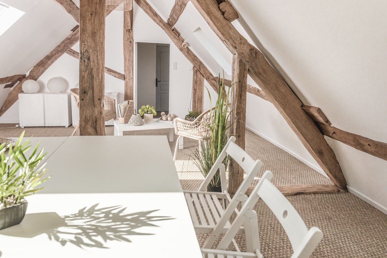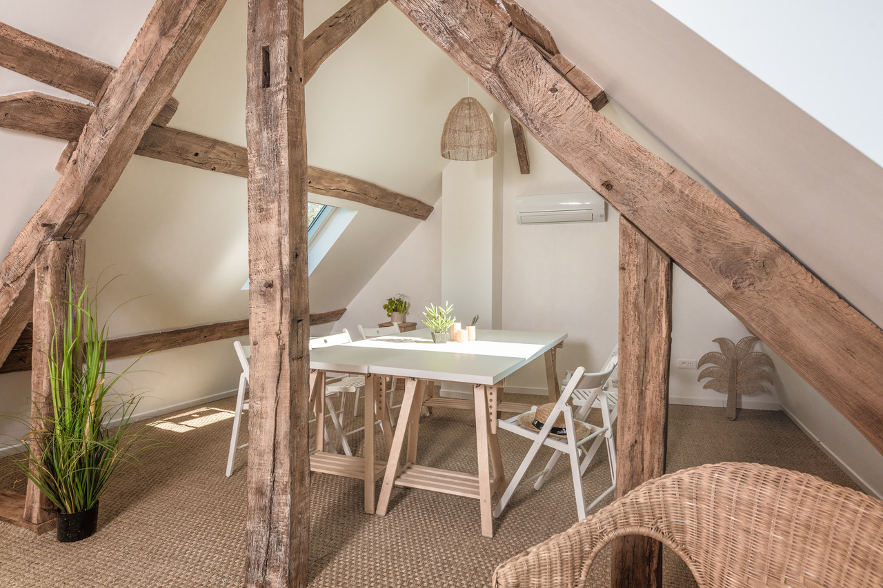 Un espace empreint d’authenticité sous cette charpente deux fois centenaire.